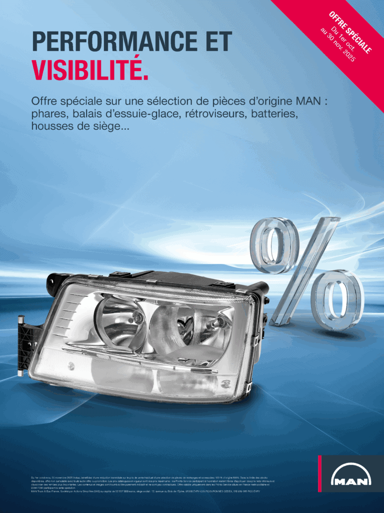 Offre spéciale sur une sélection de pièces d’origine MAN : phares, balais d’essuie-glace, rétroviseurs, batteries, housses de siège…